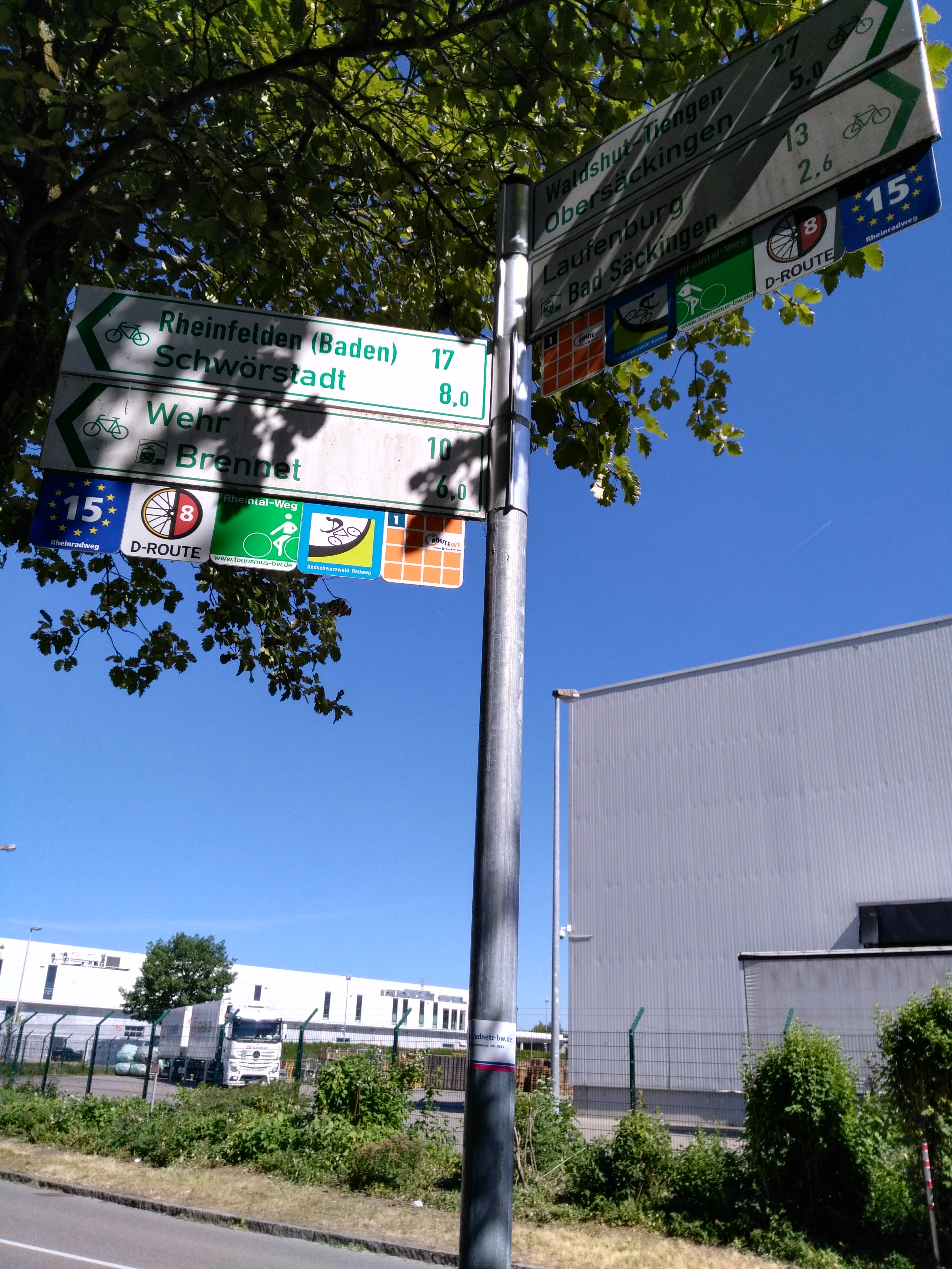 Today we had moderate and enjoyable ~56 km ride ride from Laufemburg, Germany with a destination of Basel, Switzerland. The hills were manageable and for the most part we we’re on well paved bike paths. We didn’t start to notice or be bothered by the heat until we were about 15 km out from Basel. There were a few sections of gravel and rocks and riding on busy roads especially once we entered Basel. I kinda totally hate depending on the driver’s of big trucks to not run me over but today was alright and everyone made it to the hotel in one piece. 🙂